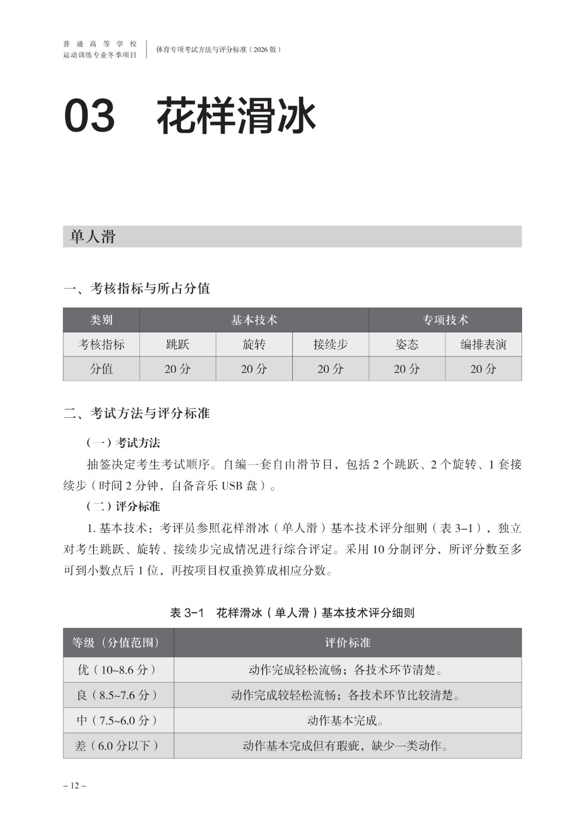 【2026版】体育专项考试方法与评分标准----花样滑冰