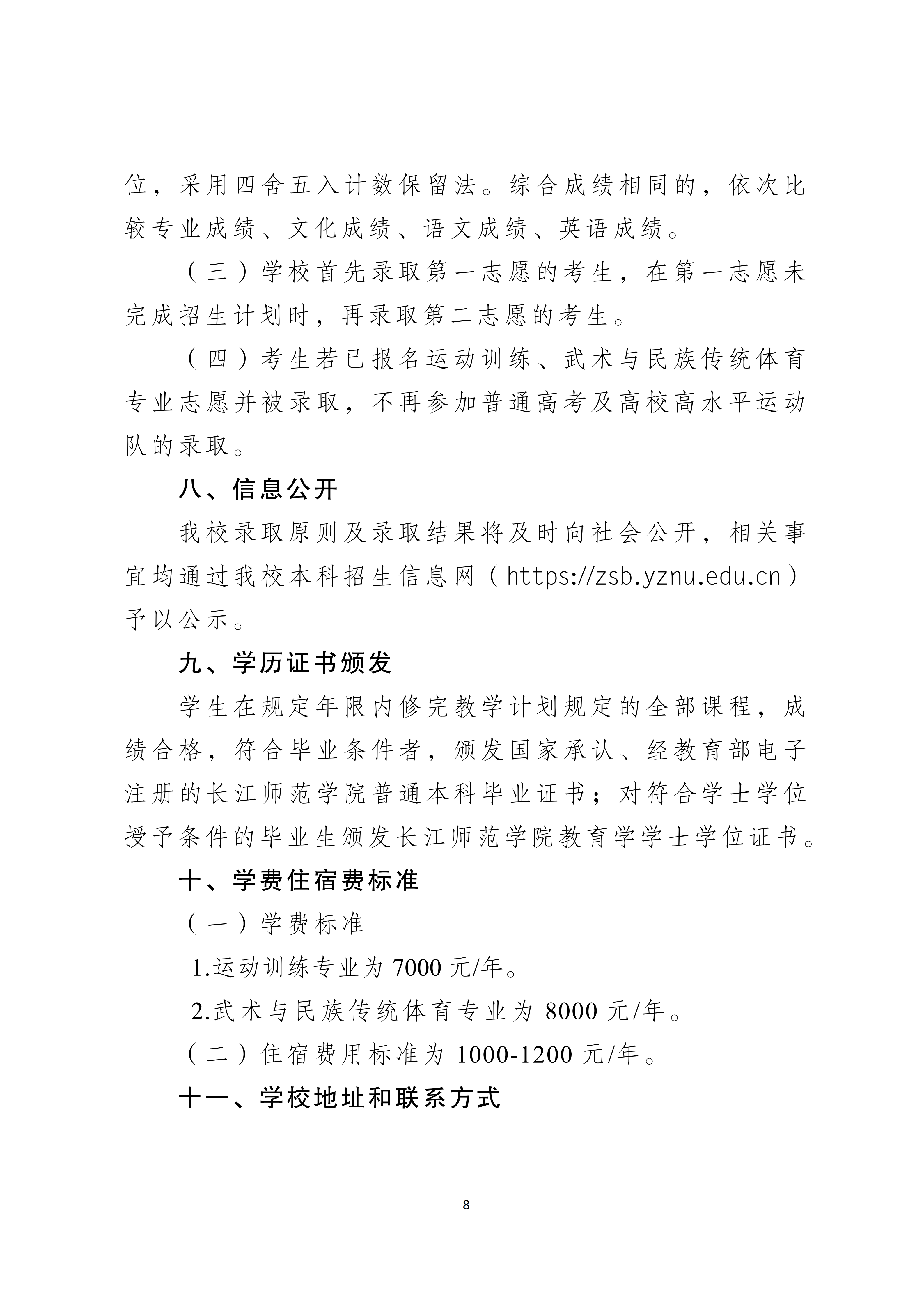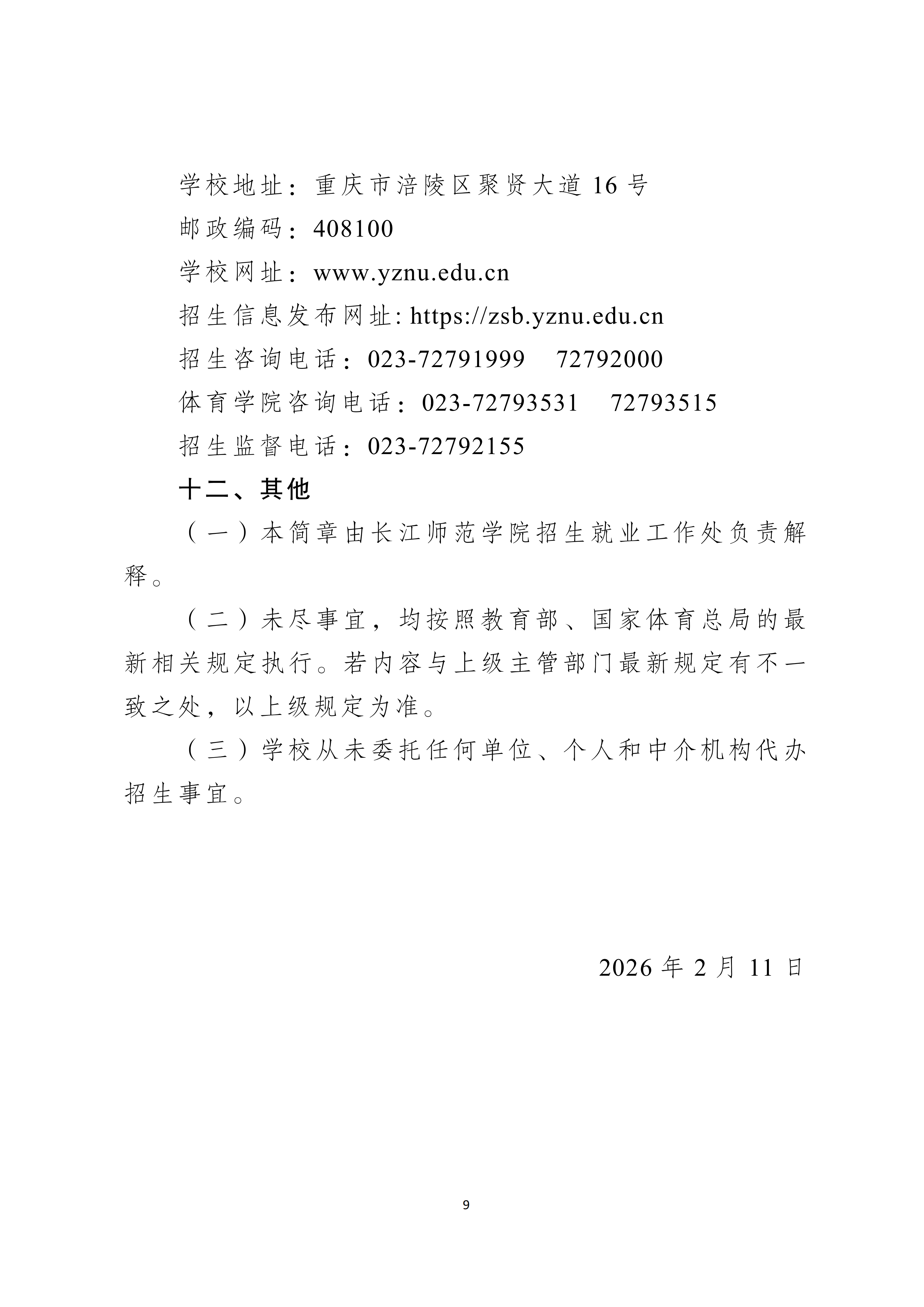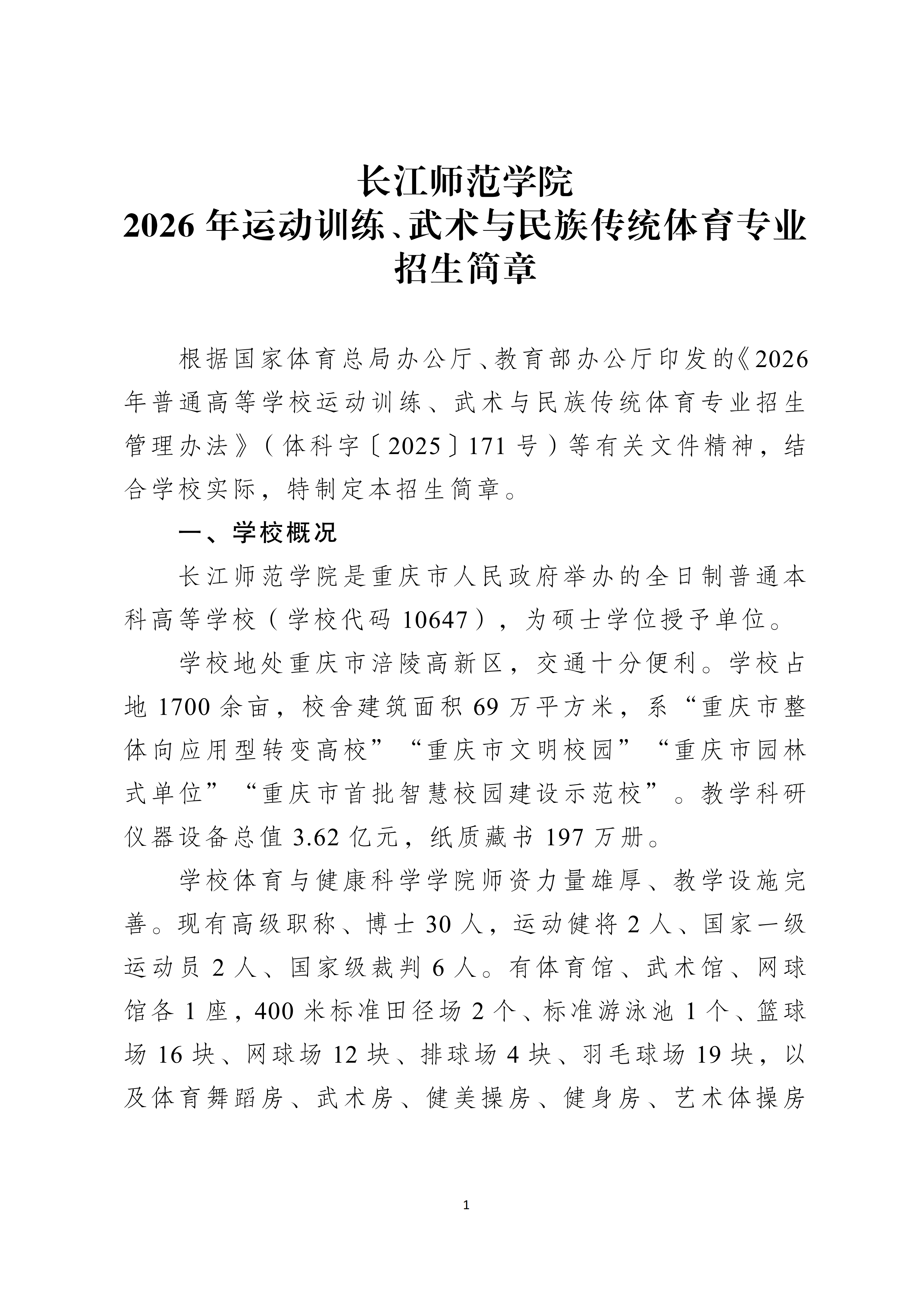 长江师范学院2026年运动训练、武术与民族传统体育专业招生简章