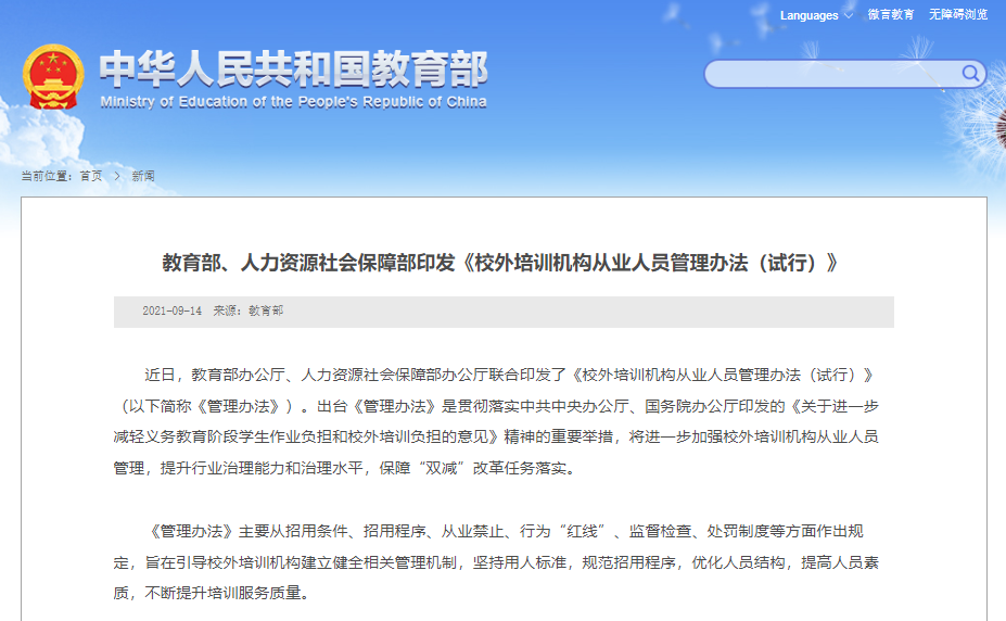 注意! 2021年9月教育部印发《校外培训机构从业人员管理办法(试行)》: 同年12月,国家体育总局印发《课外体育培训行为规范》: